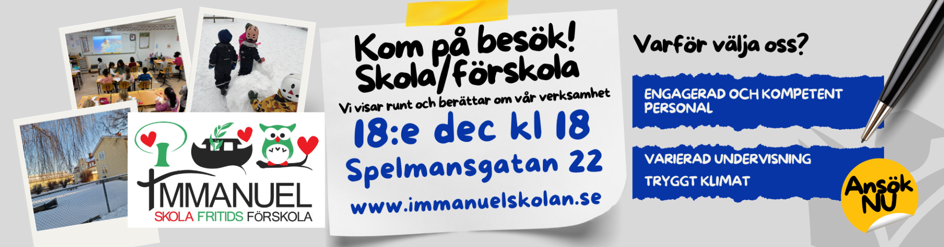 Ni är välkomna hit till oss på Spelmansgatan 22 för att se hur det ser ut på skolan och förskolan
